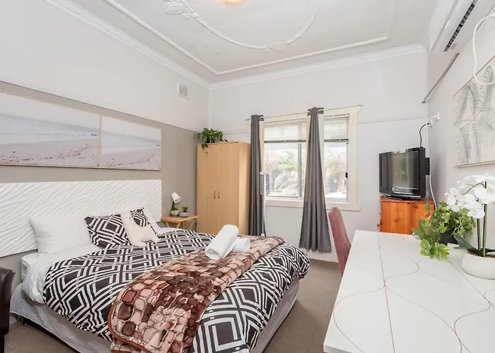Das Hotel befindet sich im Stadtteil Mascot, in 800 Meter Entfernung zum Bahnhof Mascot. Madame Tussaud's Sydney ist in einer Entfernung von 7 km von der Pension und kann leicht erreicht werden. Auch Sub Base Platypus befindet sich in der Nähe, ein paar Schritte entfernt vom Comfy Ensuite Queen Room - Nearby Airport Sydney. Die Bushaltestelle O'Riordan St before King St befindet sich ebenfalls in einer 5 Gehminuten Entfernung von der Unterkunft.